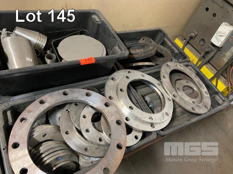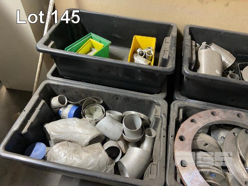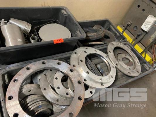ASSORTED STAINLESS STEEL & STEEL PIPE FLANGES & BENDS, APPROX 100 PIECES 8 x TUBS