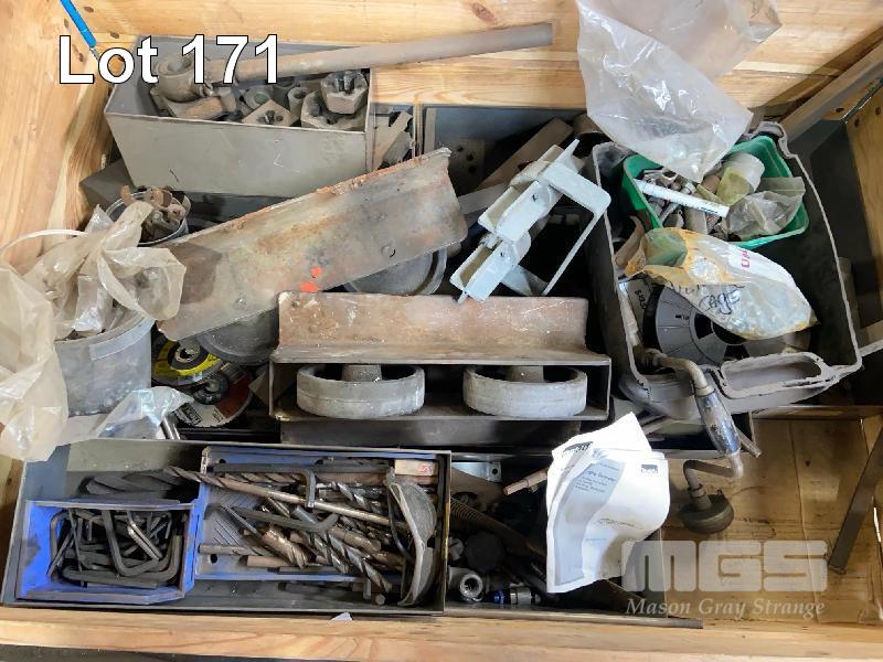 WOODEN CRATE & CONTENTS DRILL BITS, PIPE DIES, WELDING ROLLERS, HAND TOOLS