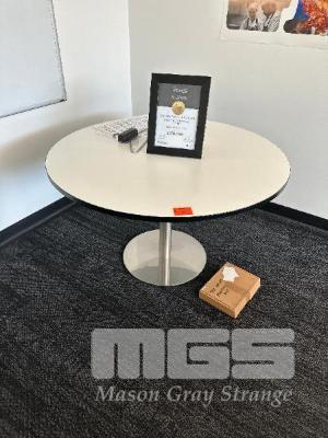 CIRCULAR PEDESTAL TABLE, WHITE/BLACK
