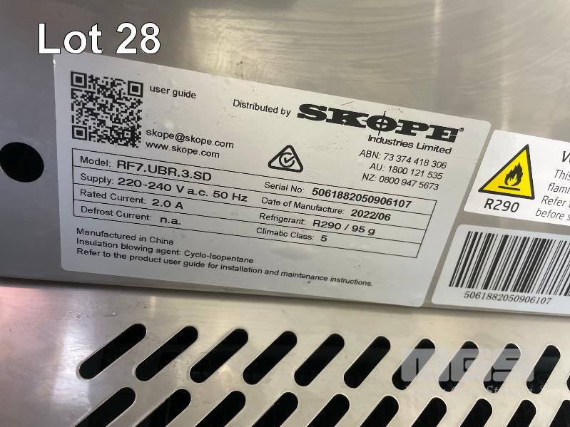 SKOPE 3 DOOR UNDER BENCH FRIDGE, DOM: 06/2022 MOD: RF7.UBR.3.SD, SERIAL: 5061882050906107, 240V 10 AMP