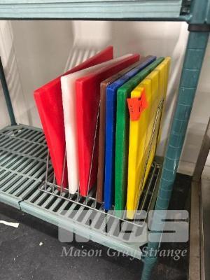 7 x CUTTING BOARDS IN RACK, 500 x 380mm