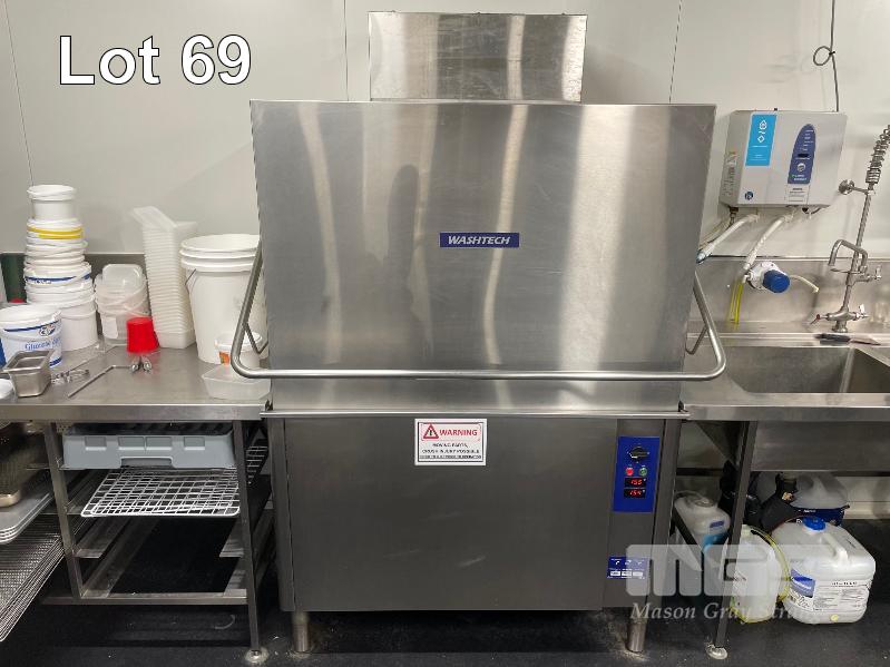 WASHTECH HIGH EFFICENCY PASS THROUGH DISHWASHER, WITH HEAT CONDENSER, 1305mm (W) MOD: PW3C, SERIAL: 176615, DOM: 2021, 415V HARDWIRED