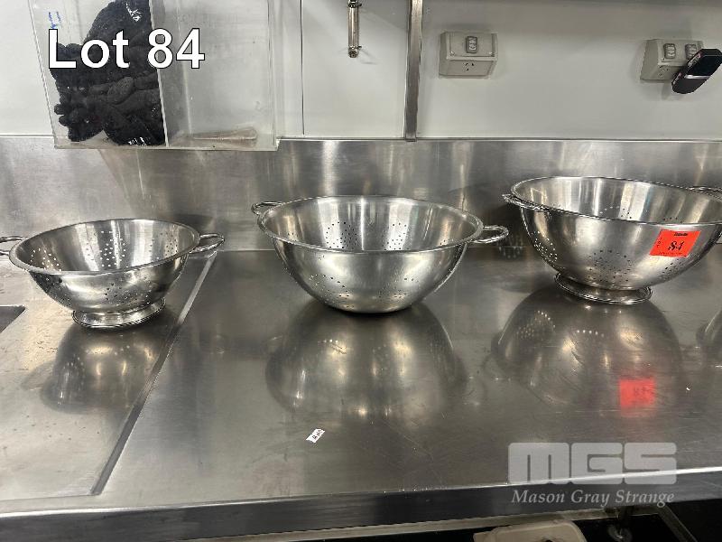 4 x STAINLESS STEEL COLANDERS, 400mm (D) & 1 x 300mm