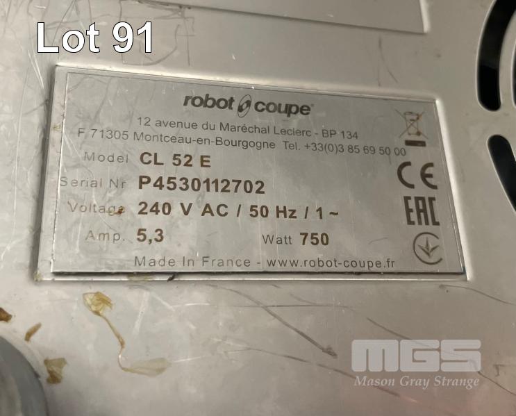 ROBOT COUPE FOOD PROCESSOR, MOD: CL52E, SERIAL: P4530112702, 750W, 240V 10AMP WITH ACCESSORIES