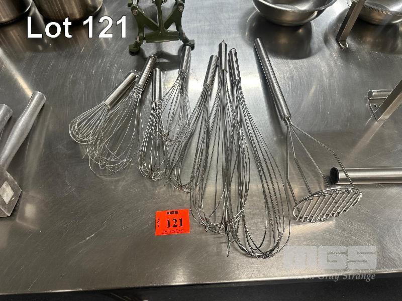7 x ASSORTED WHISKS & MASHER