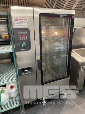 CONVOTHERM EASY DIAL ELECTRIC COMBI STEAMER OVEN, TYPE: C4eD20.20EB, SERIAL: XB721114222, POWER: 67.3kw, ADVANCED CLOSED SYSTEM+, VARIABLE FAN SPEED, 20 PAN CAP, CONVO CLEAN AUTOMATIC CLEANING SYSTEM, MODES: STEAM, COMBI STEAM & CONVECTION 415V 100AMP HARDWIRED MADE IN GERMANY WITH 19 TRANSPORT TROLLEY, 19 TRAY CAPACITY WITH 33 x PERFORATED TRAYS, 530 x 325 x 65mm