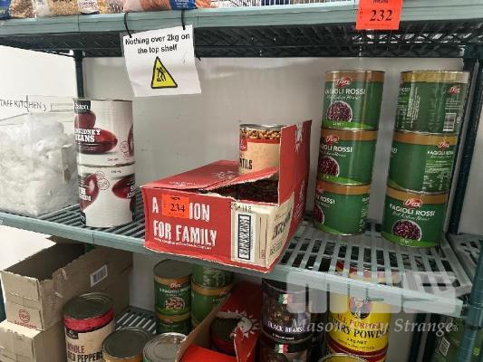 CURRY POWDER, PEPPERS, TOMATO PUREE, DICED TOMATOES, LENTILS, BEANS, SUNFLOWER OIL, ETC CONTENTS SHELF UNIT