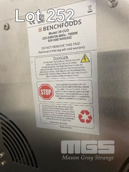 BENCHFOODS COMMERCIAL DEHYDRATOR, MOD: 28-CUD, SERIAL: 69874556202, 240V HARD WIRED