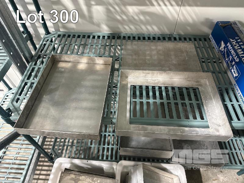 28 x ALLOY TRAYS, 410 x 305 x 50mm, REMOVABLE BASES
