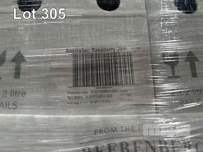 LARGE QUANTITY BEERENBERG RASPBERRY JAM, 2 LITRE PAILS, BEST BEFORE 18/10/2026 1 x PALLET