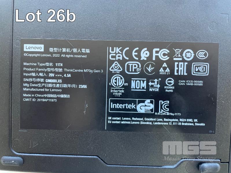 LENOVO THINK CENTRE, MOD: M70q, GEN 3, CPU: 12th GEN INTEL i5-12400T, 1.80GHz, 16GB RAM, 256GB M.2 SSD, WINDOWS 11 INSTALLED, WITH POWER SOURCE (NO KEYBOARD OR MOUSE)