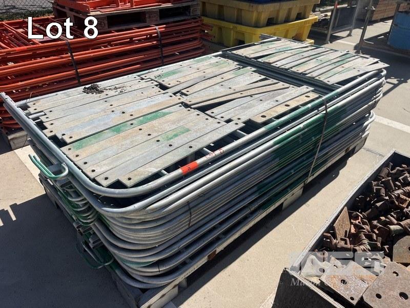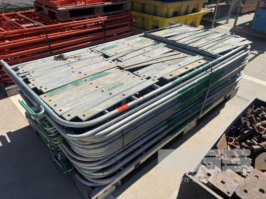 23 x GALV STEEL BARRICADE PANELS, 2100 x 1100mm & SOME FEET STANDS