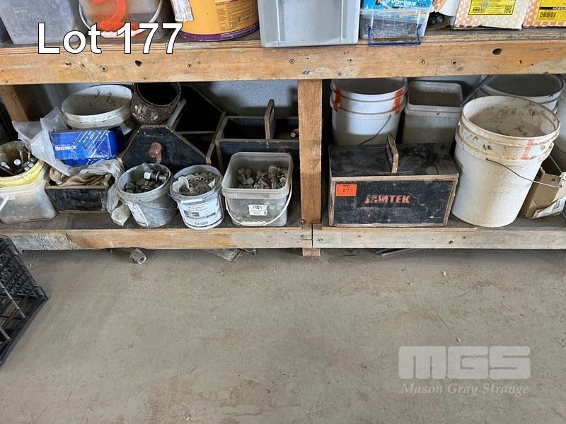 LARGE QUANTITY ASSORTED BUCKETS & BOXES OF NUTS, BOLTS, WASHERS, ETC