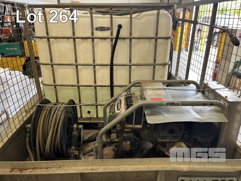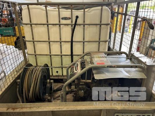 CLEAN MACHINE HIGH PRESSURE SPRAY WASHER, PETROL DRIVEN, ELECTRIC START WITH HOSE REEL & SPRAY WAND 1000 LITRE POLY INC WATER TANKE