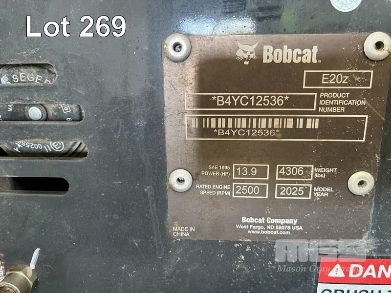 2025 BOBCAT E20Z MINI EXCAVATOR REG: S68 ZCE PIN: B4YC12536 RUBBER TRACKED 236.2 OPERATING HOURS 1000mm BLADE BUCKETS, 900/450/300mm WITH TANDEM AXLE ALUMINIUM PLANT TRAILER REG: S170 TLR VIN: 629PIG2TBRC094290 WITH ELECTRIC BRAKES & LOADING RAMPS