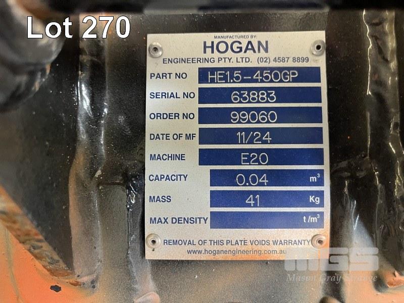 2024 HOGAN MINI EXCAVATOR BUCKET, 450mm, E20/HE 1.5-450GP