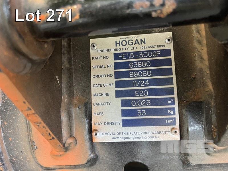 2024 HOGAN MINI EXCAVATOR BUCKET, 300mm, E20/HE 1.5-300GP