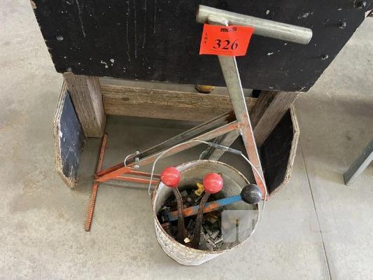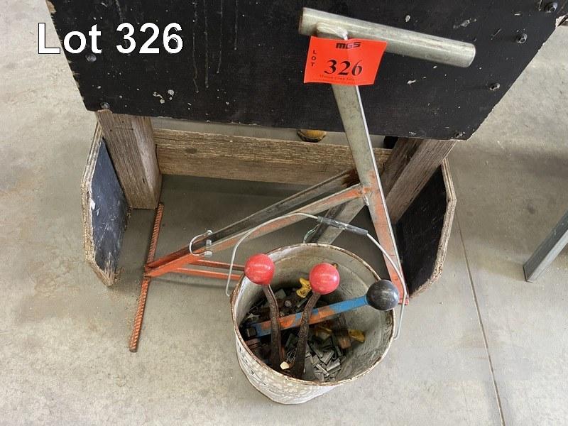 STEEL STRAP SYSTEM WITH DE REELING STAND TENSIONER & CRIMPER WITH BUCKET OF CRIMPS