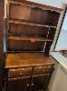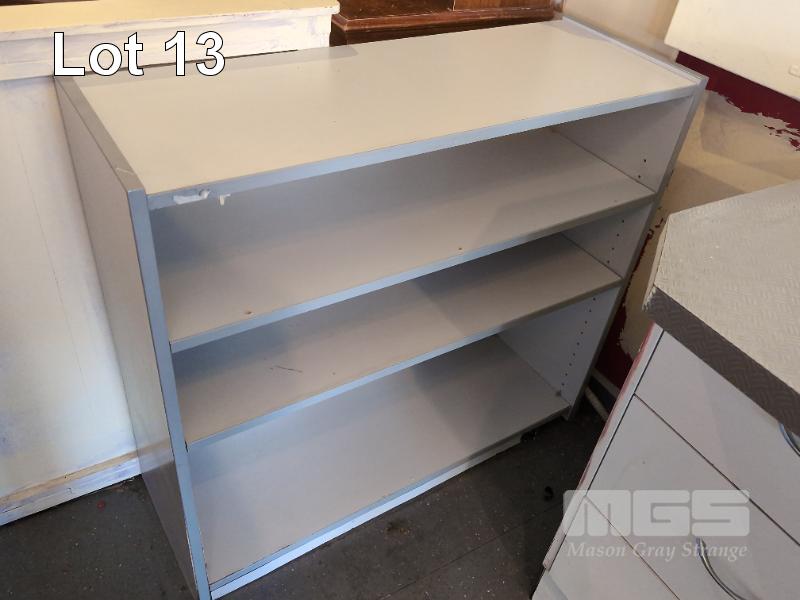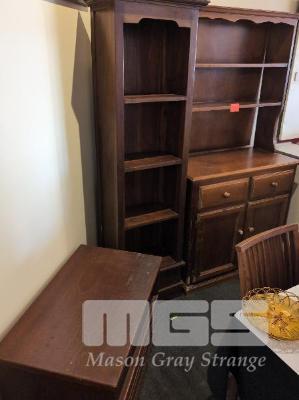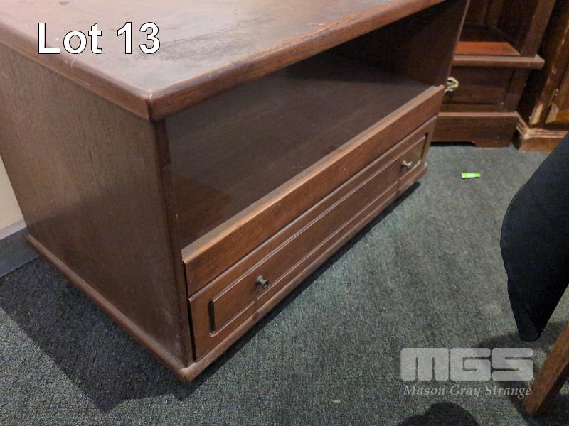 4 X PIECES OF FURNITURE, TIMBER SIDEBOARD CABINET, TIMBER SHELF, TELEVISION CABINET & GREY LAMINATE SHELF