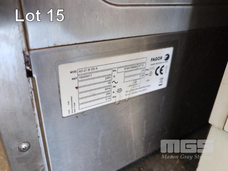 FAGOR STAINLESS STEEL COMMERCIAL ELECTRIC UNDER COUNTER GLASS WASHING MACHINE, MODEL AD-21 B DD, 240 VOLT SINGLE PHASE