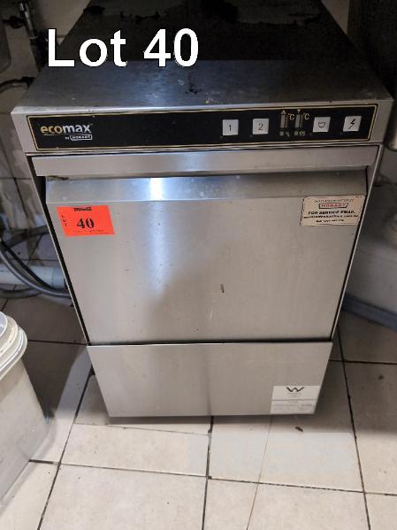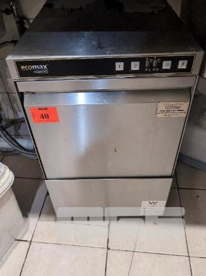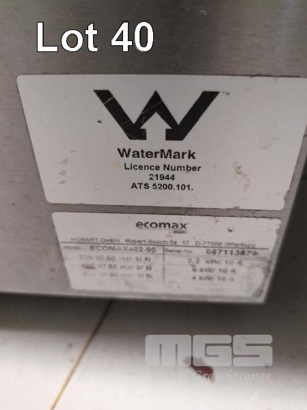 HOBART ECOMAX STAINLESS STEEL COMMERCIAL ELECTRIC UNDER COUNTER GLASS WASHING MACHINE, MODEL 402-90, 240 VOLT SINGLE PHASE