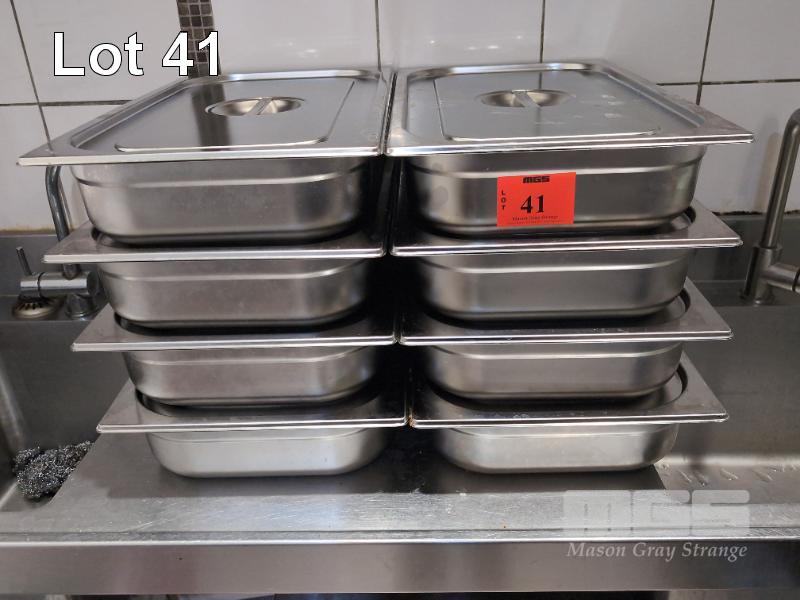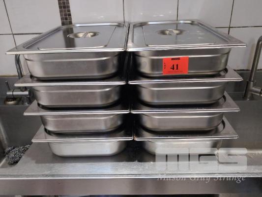 8 X GASTRONORM 1/1 PANS, DEPTH 100 MM WITH LIDS.