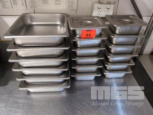 ASSORTED GASTRONORM PANS 5 X 1/2 PANS, DEPTH 70 MM WITH LIDS 1 X 1/2 PAN, DEPTH 70 MM, NO LID 12 X PANS TRENTON 70 X 70 MM, DEPTH 65 MM WITH LIDS.