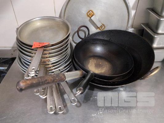 ASSORTED FRY PANS, WOK & CAST IRON