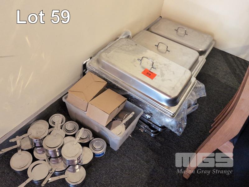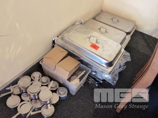 QUANTITY CHAFING DISH KITS - DISASSEMBLED WITH FUEL HOLDERS & FUEL.