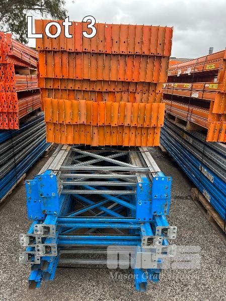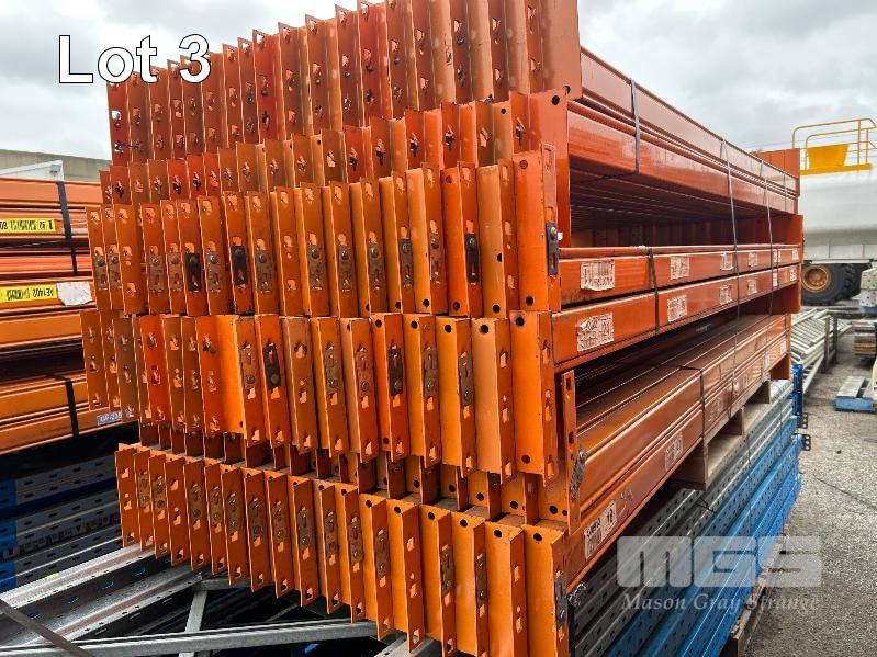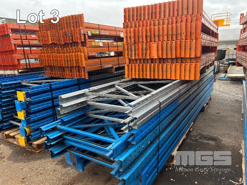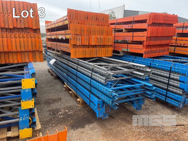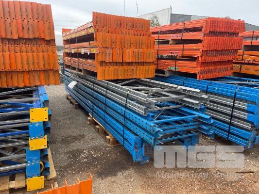 11 BAYS PALLET RACKING COMPRISING, 12 x DEXION UPRIGHTS, 4960mm (H) x 840mm (W) 108 x CROSSBEAMS, 2680mm (L) 2 X PALLETS