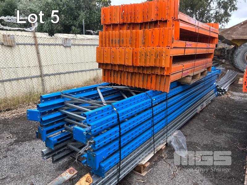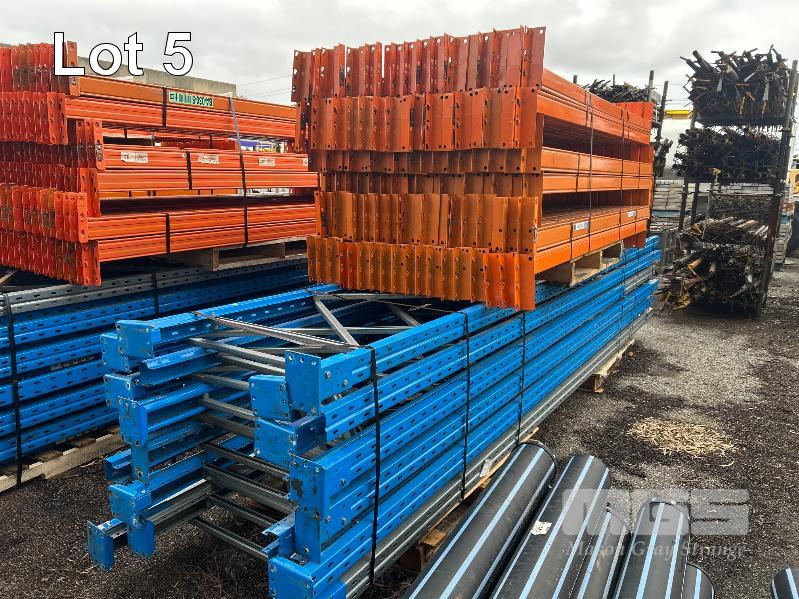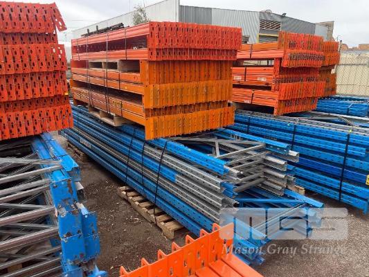 11 BAYS PALLET RACKING COMPRISING, 12 x DEXION UPRIGHTS, 4960mm (H) x 840mm (W) 108 x CROSSBEAMS, 2680mm (L) 2 X PALLETS