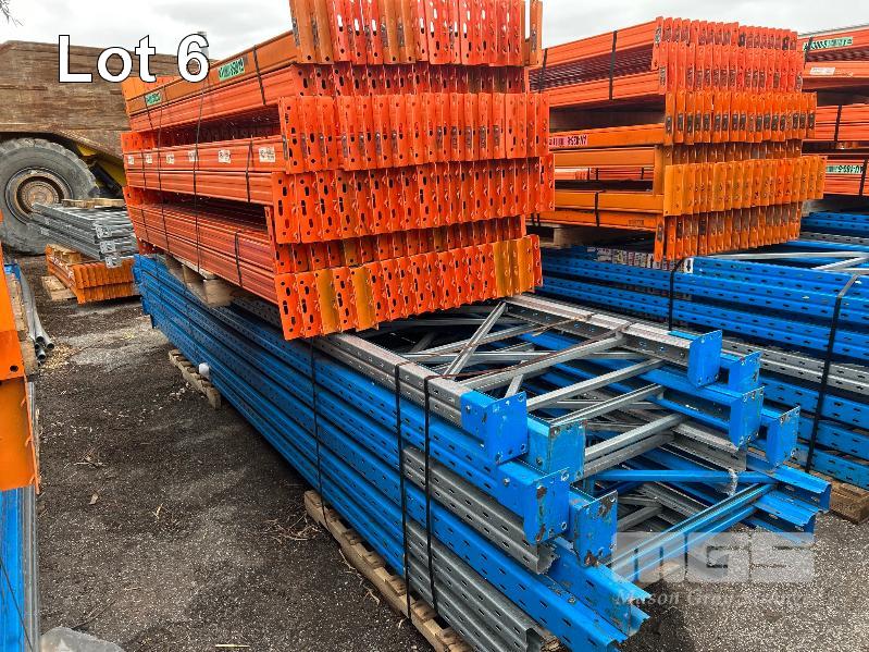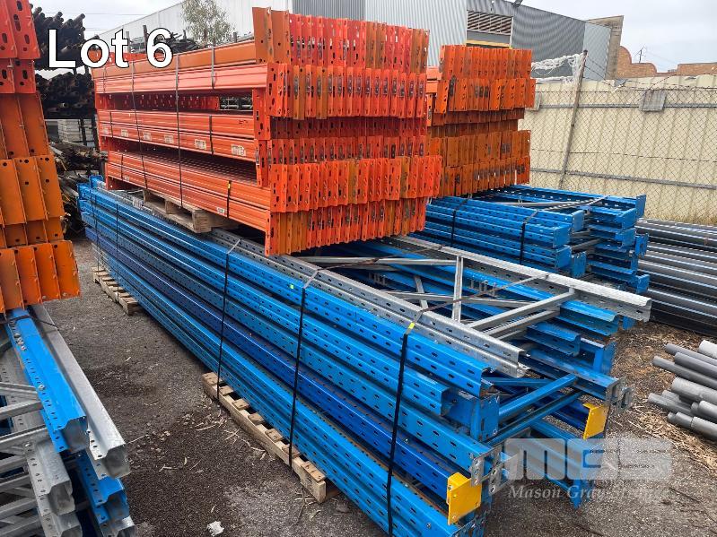 11 BAYS PALLET RACKING COMPRISING, 12 x DEXION UPRIGHTS, 4960mm (H) x 840mm (W) 108 x CROSSBEAMS, 2680mm (L) 2 X PALLETS