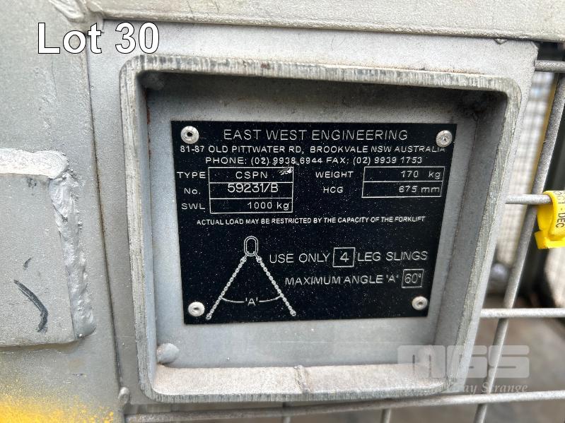 2 x LIFTING CAGES, EAST WEST ENGINEERING (CSPM) RATED: 1,000kg LIFTING POINTS & FORK POCKETS 1350 x 1350mm x 1000mm (H)