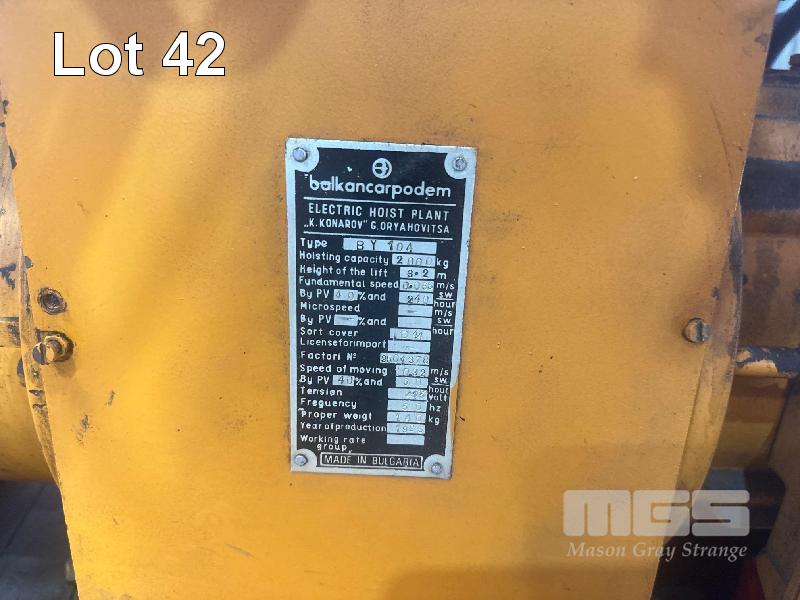 ELECTRIC GANTRY HOIST, BULKENDOF MOD: HY104 2000kg CAPACITY TRAVELLING DRIVE 415V WITH GANTRY BEAMS, 9m & 9.7m + UPRIGHT POSTS