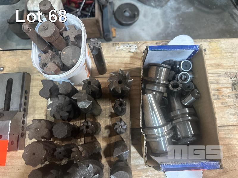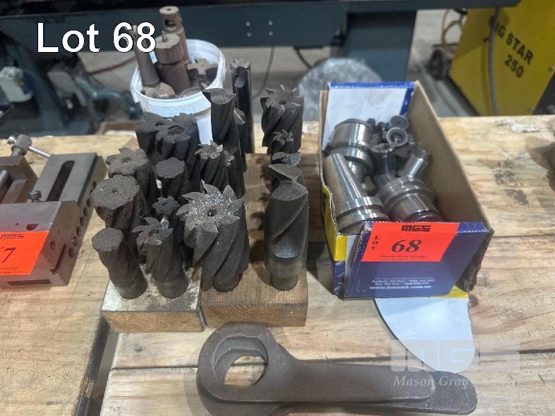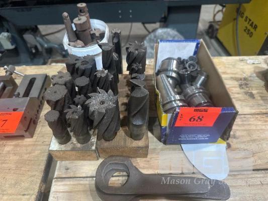3 x BT40 TOOL HOLDERS & COLLETS & NEW/USED MIL CUTTERS, HSS & CARBIDE TIPPES