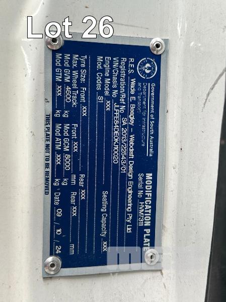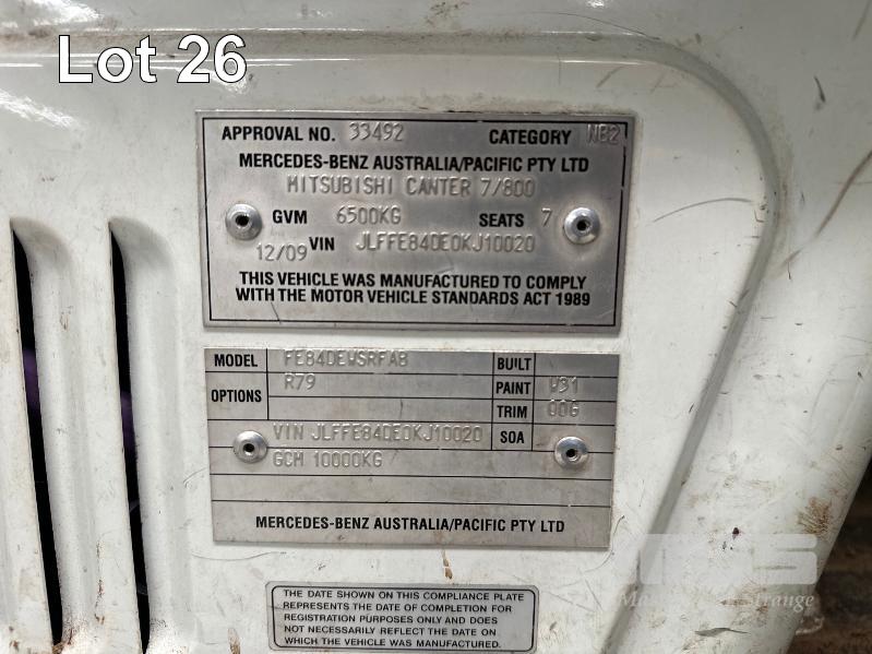 2009 MITSUBISHI CANTER FUSO FE84DEWSRFA8 4X2 CREW CAB REG: S073AGC (SA) VIN: JLFFE84DE0KJ10020 ODO: 121,379km GVM: 6500 GCM: 10,000 5 SPEED MANUAL, DIESEL, 4 DOORS, 7 SEAT, ALLOY TRAY, 3300mm, DROP SIDES (NB) BACK BAR BENT (WITH 1 KEY/S)