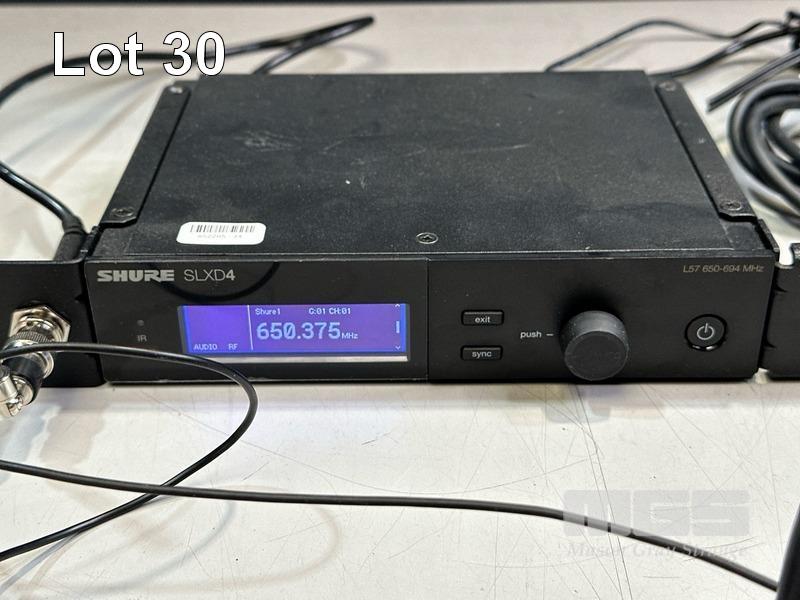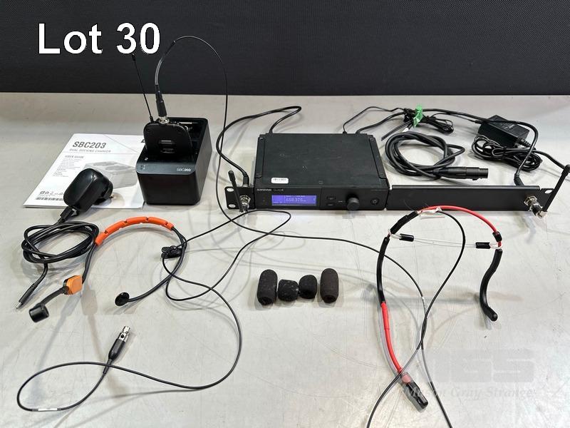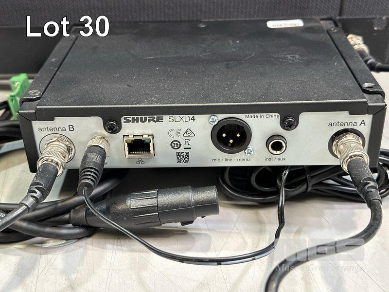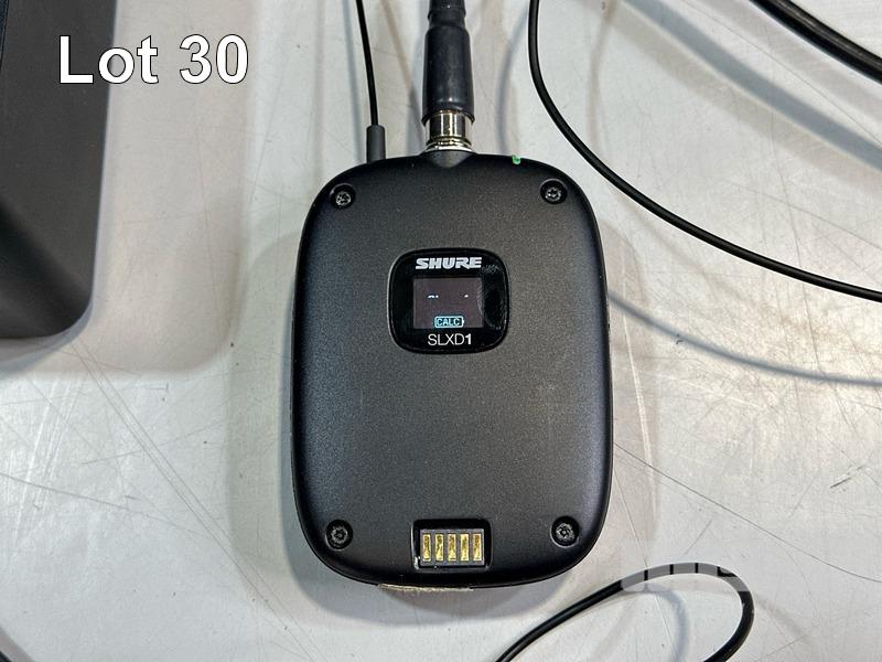 SHURE SLXD4 L57 650-694MHz DIGITAL WIRELESS RECEIVER WITH SHURE SLXD1 WIRELESS BODYPACK, 2 x HEADSETS, SHURE SBC203 DUAL DOCKING CHARGER