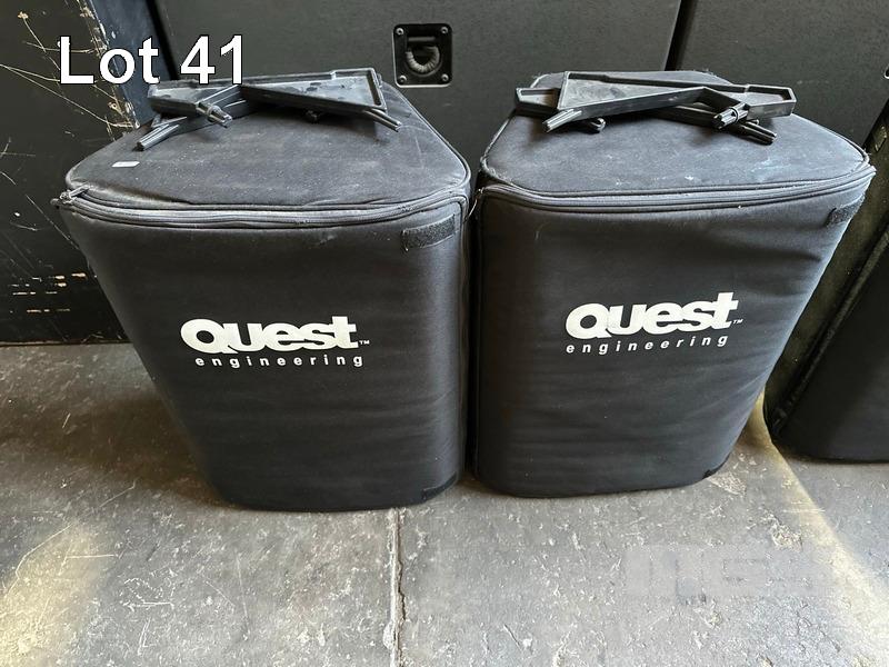 PAIR QUEST ENGINEERING QS 350 12" SPEAKERS, WITH FOLD BACK WEDGES & COVERS