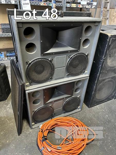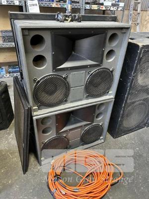 2 x JBL SOUND POWER SERIES, DUAL 12", JBL SPEAKER 2204, 2" COMPRESSION DRIVER, 2445 WITH BRACKETS & CABLES