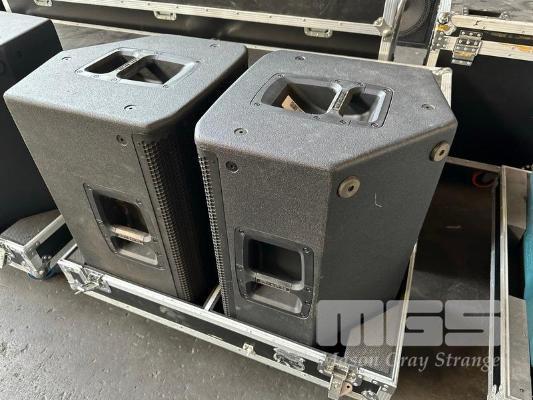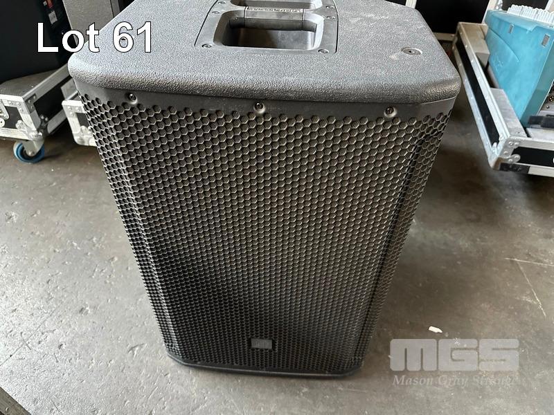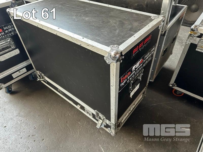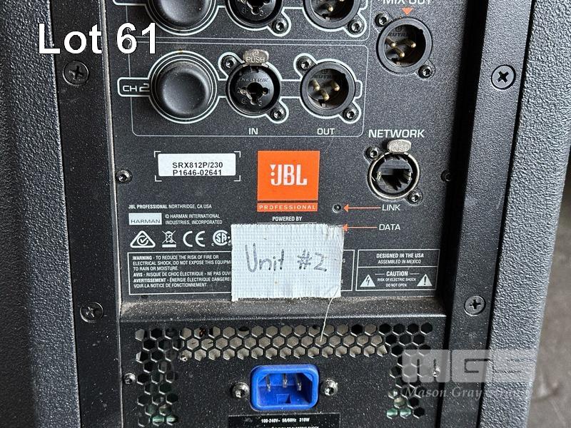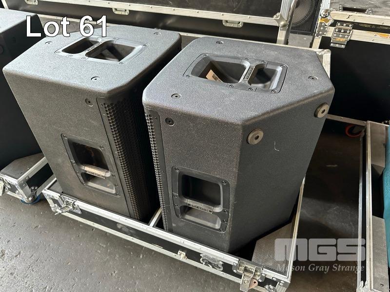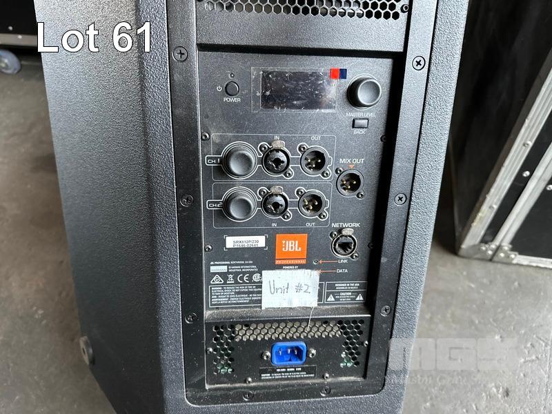 PAIR JBL SRX812P/230 12" POWERED SPEAKERS WITH MOBILE ROAD CASE, 95 x 47 x 70cm