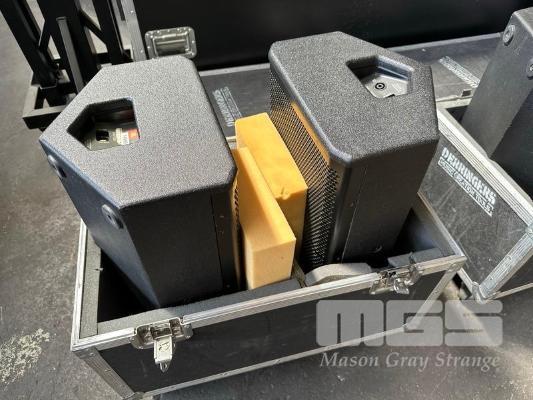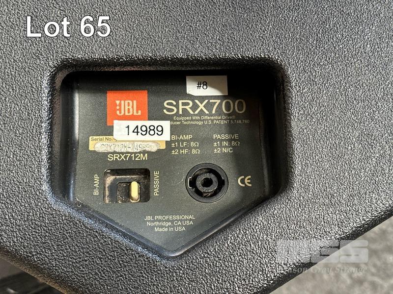 PAIR JBL SRX712M SPEAKERS WITH MOBILE ROAD CASE, 72 x 47 x 66cm