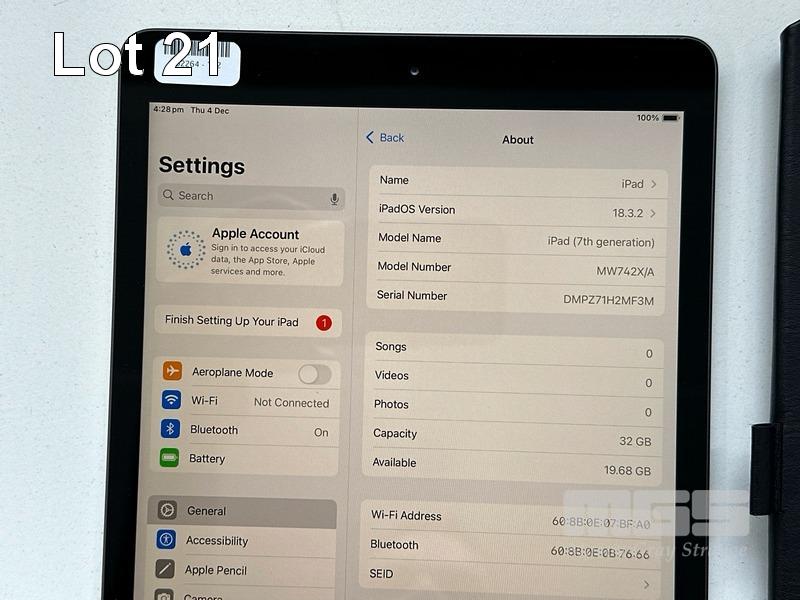 APPLE iPAD 7TH GEN, 32GB, Wi-Fi, SPACE GREY, MODEL MW742X/A, A2197 WITH COVER (NO CABLE, NO CHARGER) S/N:DMPZ71H2MF3M