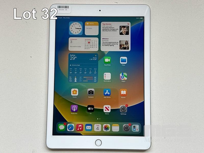 APPLE iPAD 5TH GEN, 32GB, Wi-Fi, SILVER, MODEL MP2G2X/A, A1822 (NO CABLE, NO CHARGER) S/N:DMPTWAJ7HLFC