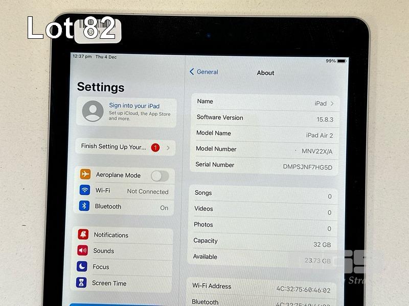 APPLE iPAD AIR 2, 32GB, Wi-Fi, SPACE GREY, MODEL MNV22X/A, A1566 (NO CABLE, NO CHARGER) S/N:DMPSJNF7HG5D