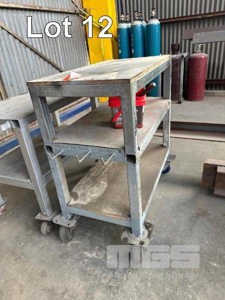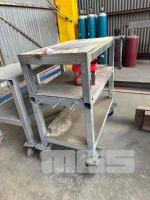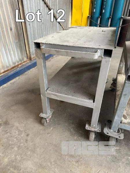 2 x STEEL MOBILE STOCK TROLLEYS,