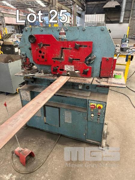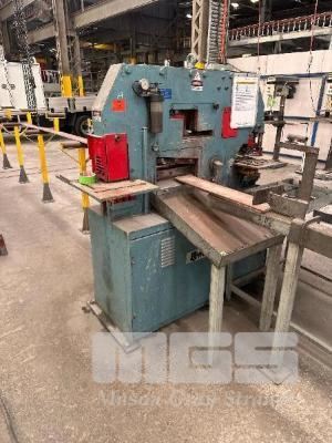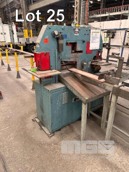HYDRAULIC PUNCH & SHEAR, KINGSLAND 60XA 60 TONNE WITH PUNCHES & BACK STOP, INFEED ROLLERS & SMALL STEEL BENCH