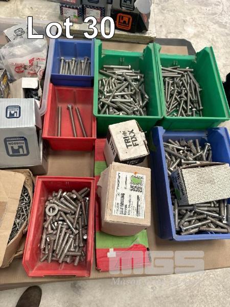 ASSORTED HARDWARE, STAINLESS STEEL & STEEL, BOLTS, SCES, WASHERS, RIVETS, STAPLES, CONTENTS 2 x TROLLEYS INCLUDING TROLLEYS