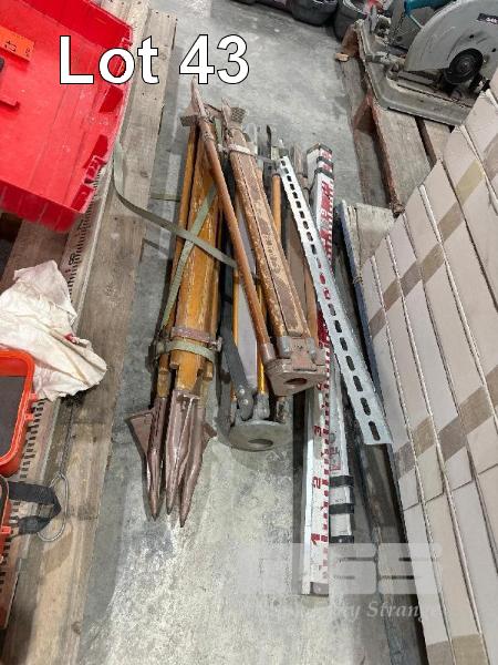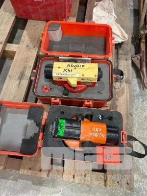 2 x LASER LEVELS, 3 x TRIPODS & SURVEYOR STICK