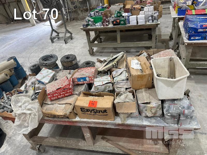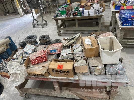TROLLEY & ASSORTED HARDWARE, MESH WIRE, EZYSTRUT HARDWARE, GALV CLAMPS
