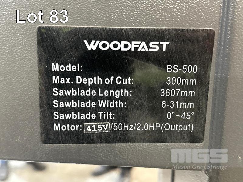 VERTICAL WOOD BANDSAW, WOODFAST MOD: BS500 450mm THROAT x 300m (D) 415V
